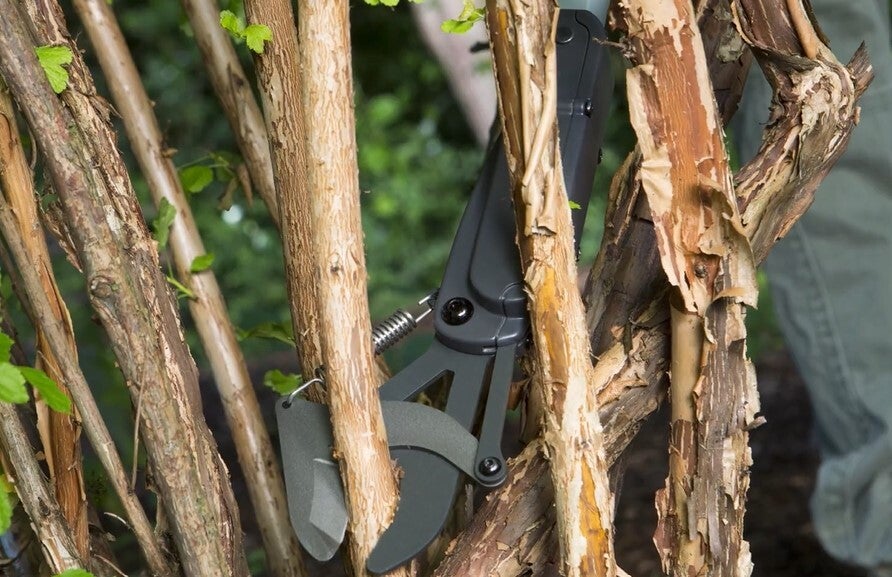 De Takkenschaar Slimcut is de ideale hulp bij het uitdunnen van dichte heesters en struiken, maar kan ook bij andere snoeiwerkzaamheden worden gebruikt. Takken en twijgen groeien vaak dicht bij elkaar, maar dankzij het slanke model en de openingshoek van 0° kunt u deze dichtbegroeide zones bereiken en probleemloos uitdunnen.
