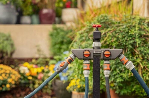 Met de GARDENA 4-weg waterverdeler kunt u gelijktijdig diverse accessoires aansluiten op één kraan. De waterafgifte kan voor elke aansluiting afzonderlijk worden geregeld of afgesloten. Op de 4-weg waterverdeler kunnen twee GARDENA besproeiingscomputers of watertimers worden aangesloten.