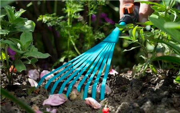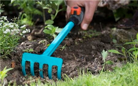 Het schepje wordt gebruikt voor het planten en verplanten in bloembedden en plantenpotten. Maak de grond los met het harkje.